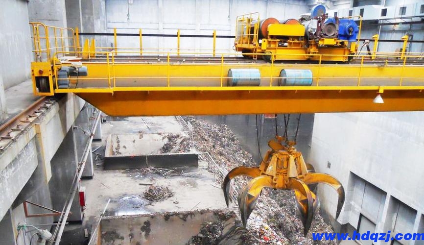 垃圾吊的類型主要有橋式垃圾吊和門式垃圾吊兩種。橋式垃圾吊是橫架于垃圾坑上方的起重機,它的橋架沿兩側(cè)軌道縱向運行,可以充分利用橋架下面的空間吊運物料,不受地面設(shè)備的阻礙。門式垃圾吊是由兩根支腿和一根主梁組成的起重機,它的主梁可以有懸伸或無懸伸兩種形式,小車在主跨度內(nèi)或超出主跨度進行。門式垃圾吊的支腿高度可以根據(jù)使用場地的要求而定,一般有全門式、半門式和雙懸臂門式三種。